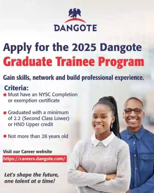 The Dangote Graduate Trainee Programme is a 12-month, fully paid training initiative designed to equip fresh Nigerian graduates with the skills, experience, and exposure needed to thrive in the professional world. It’s more than just a stepping stone — it’s a solid foundation for a meaningful career in one of Africa’s most respected conglomerates.